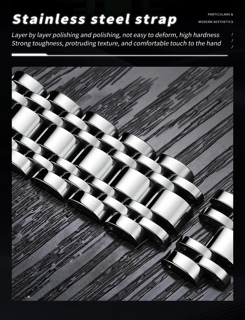 Moon Phase Display: A beautiful moon phase complication adds celestial charm, keeping you connected to the rhythms of the universe.