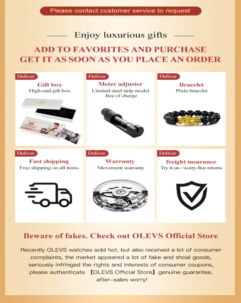 Waterproof: Ready for any adventure, the Gold Otto OLEVS is waterproof, so you can wear it in the rain, by the pool, or wherever life takes you.